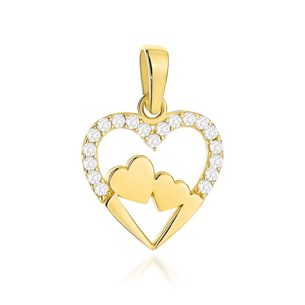 Zawieszka złota splecione serduszka w sercu wysadzanym cyrkoniami 585
