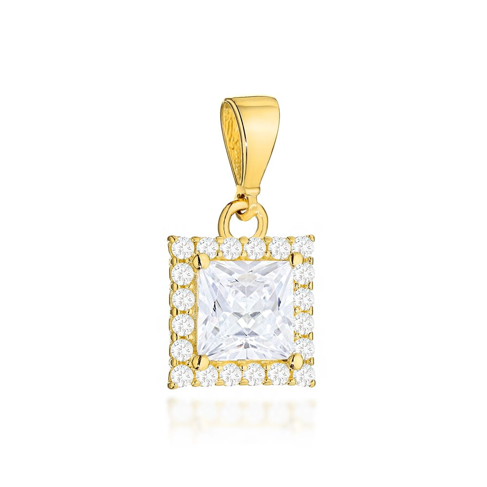 Propozycja dla osób, które cenią sobie elegancję i ponadczasowy styl. Centralnym punktem biżuterii jest kwadratowa cyrkonia, która pięknie odbija światło, podkreślając urok całej zawieszki. Jej blask został dodatkowo spotęgowany przez małe cyrkonie, które oprawione wokoło tworzą efektowną oprawę i sprawiają, że całość prezentuje się niezwykle luksusowo.