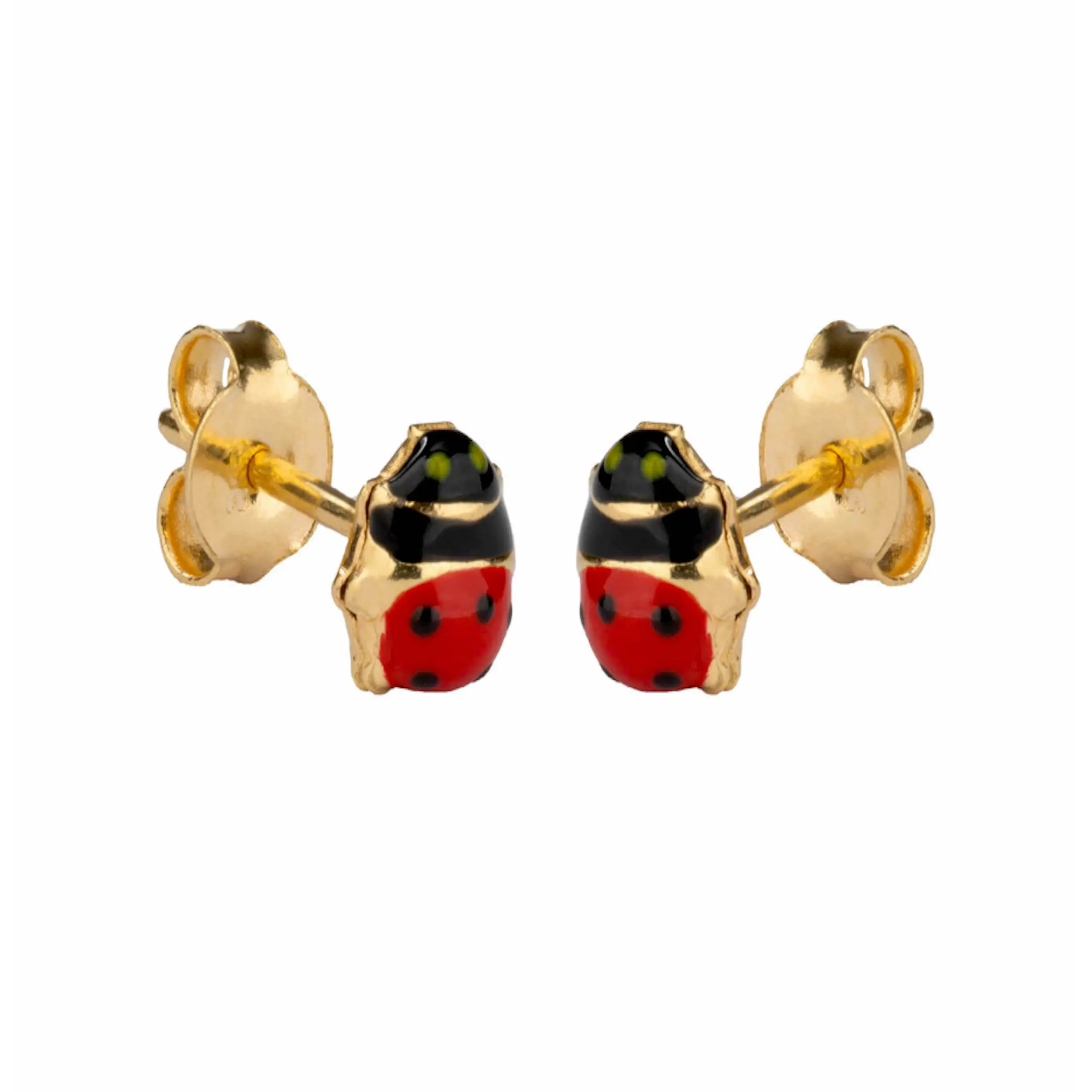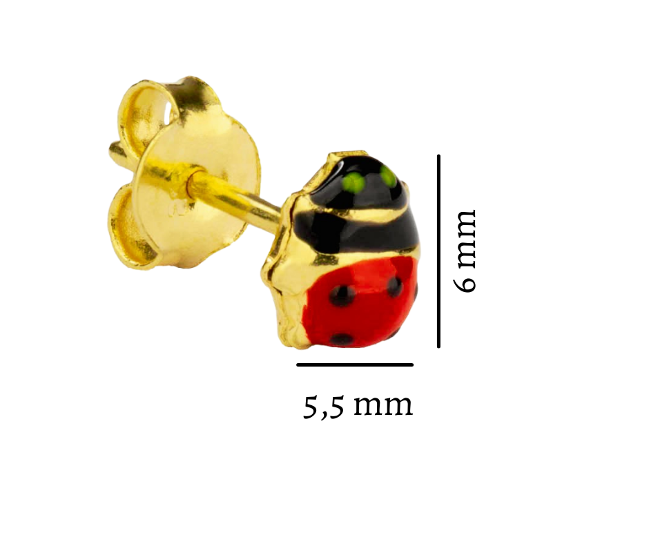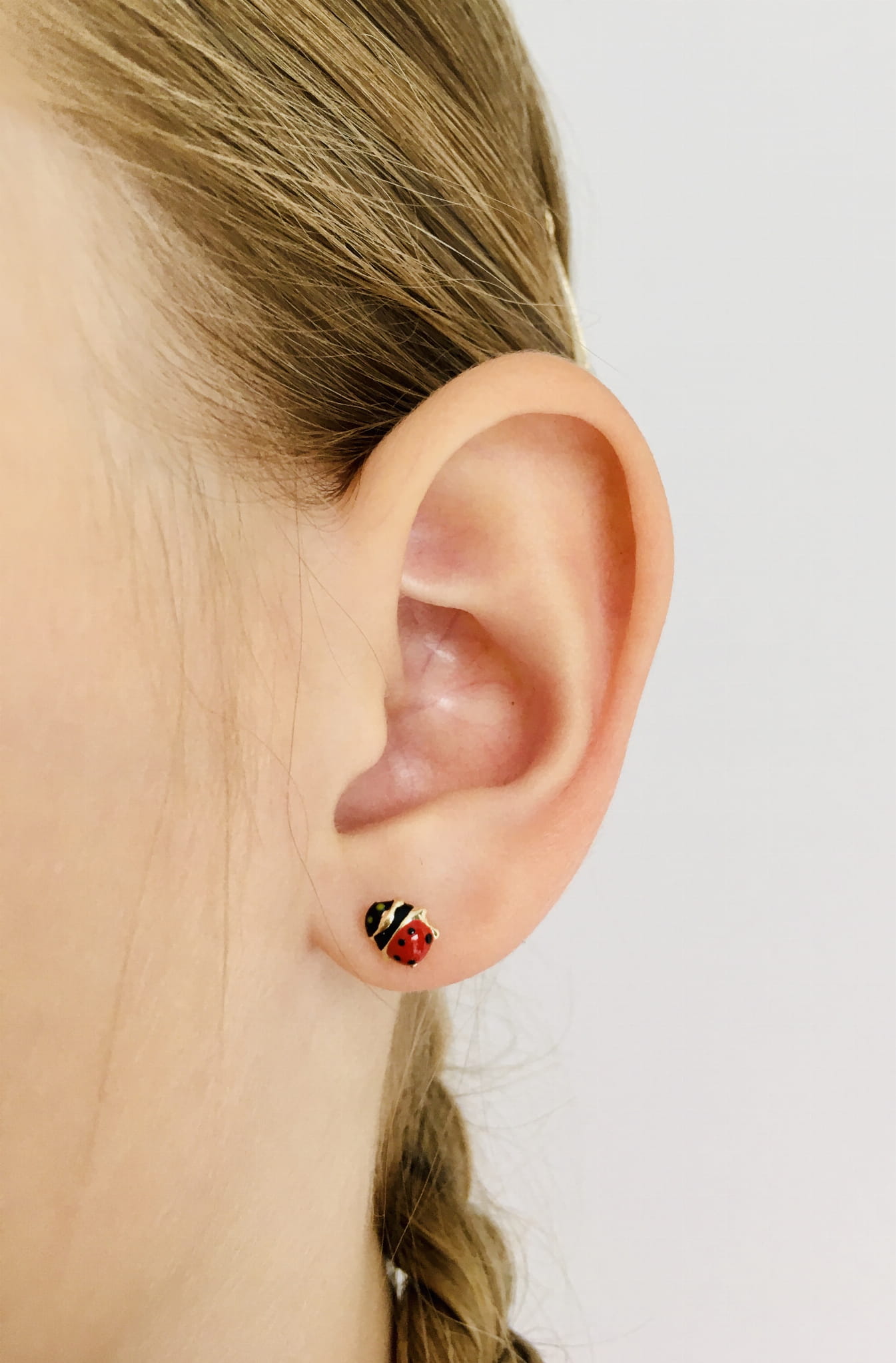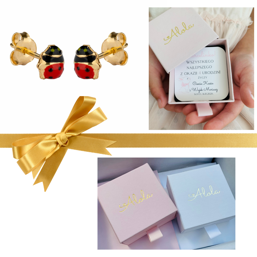 Złote kolczyki 585 biedronki dla dziewczynki sztyft/ Pamiątka Chrztu, Prezent na Roczek
