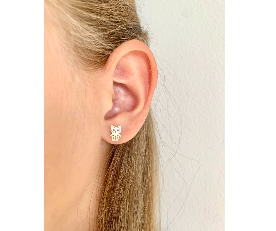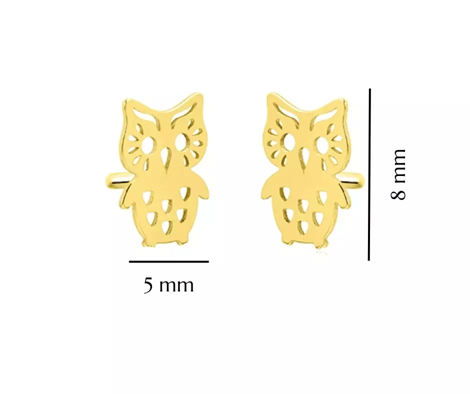 Złote kolczyki 585 sowy dla dziewczynki sztyft/ Prezent na Chrzest, Komunię, Roczek