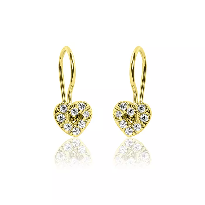 Złote kolczyki dla dziewczynki serduszka z cyrkoniami 585 na chrzest, Komunia