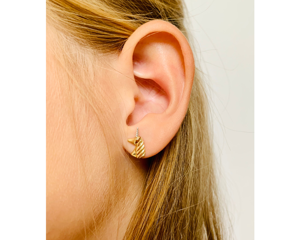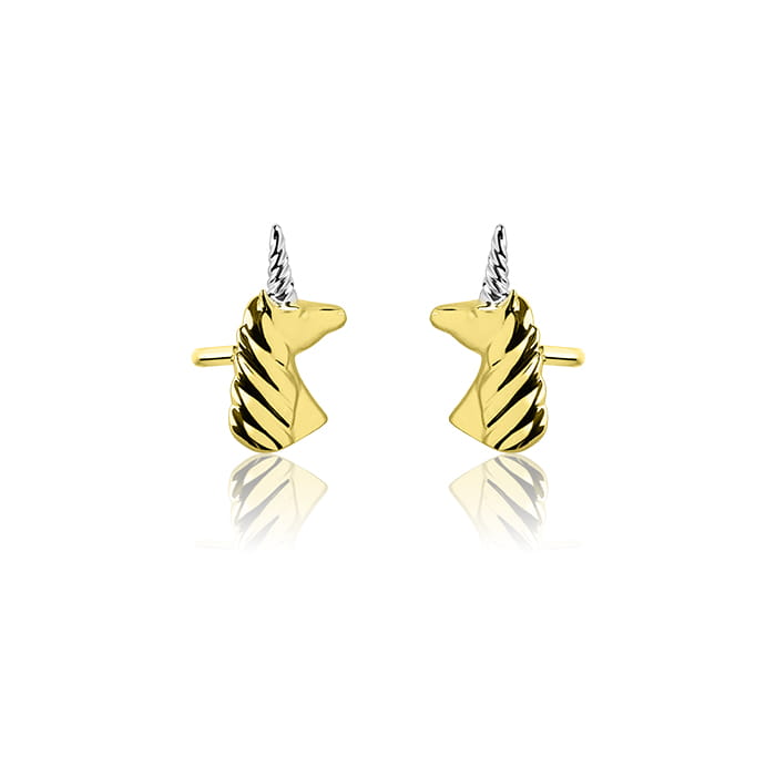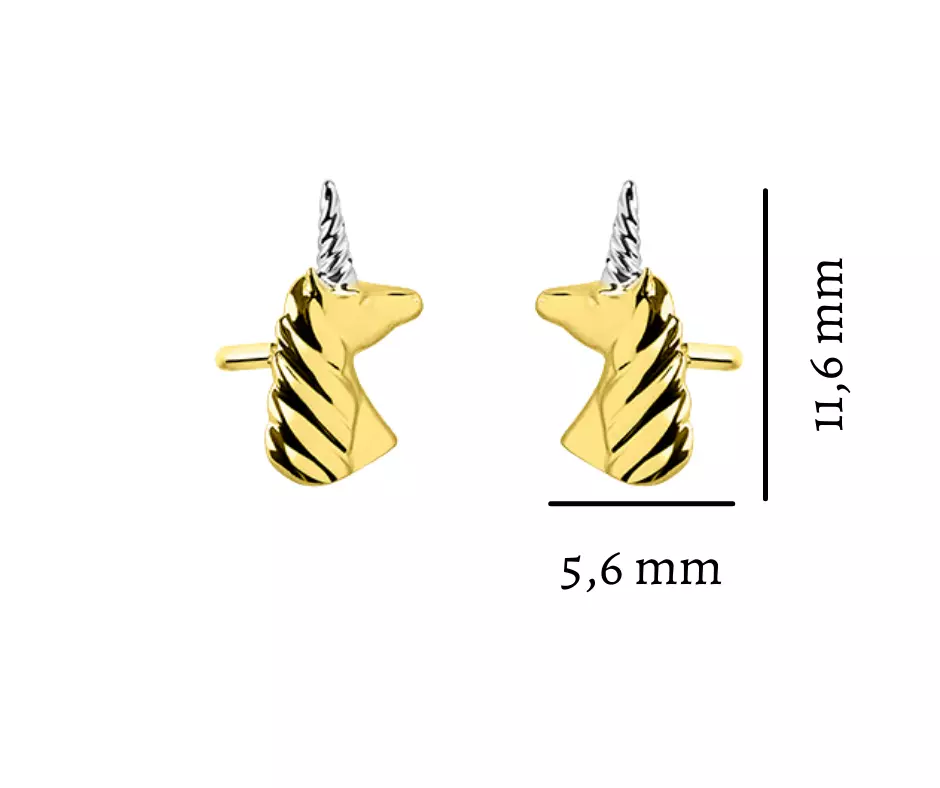 Złote kolczyki jednorożce dla dzieci, wykonane zostały ze złota próby 585. Kolczyki posiadają praktyczne zapięcie typu sztyft. Kolczyki w kształcie jednorożców to urocza i kreatywna biżuteria, która cieszy się dużą popularnością wśród dzieci, lubiących magię, fantazję i mitologiczne stworzenia. Jednorożce uważane są za symbol szczęścia, czystości i siły. Kolczyki złote to śliczna biżuteria dla dzieci, doskonale sprawdzą się w roli pamiątki z okazji Pierwszej Komunii Świętej, Chrztu Świętego lub innej wyjątkowej uroczystości. Jest to elegancki i uroczy model kolczyków, który pasuje do wielu stylizacji.