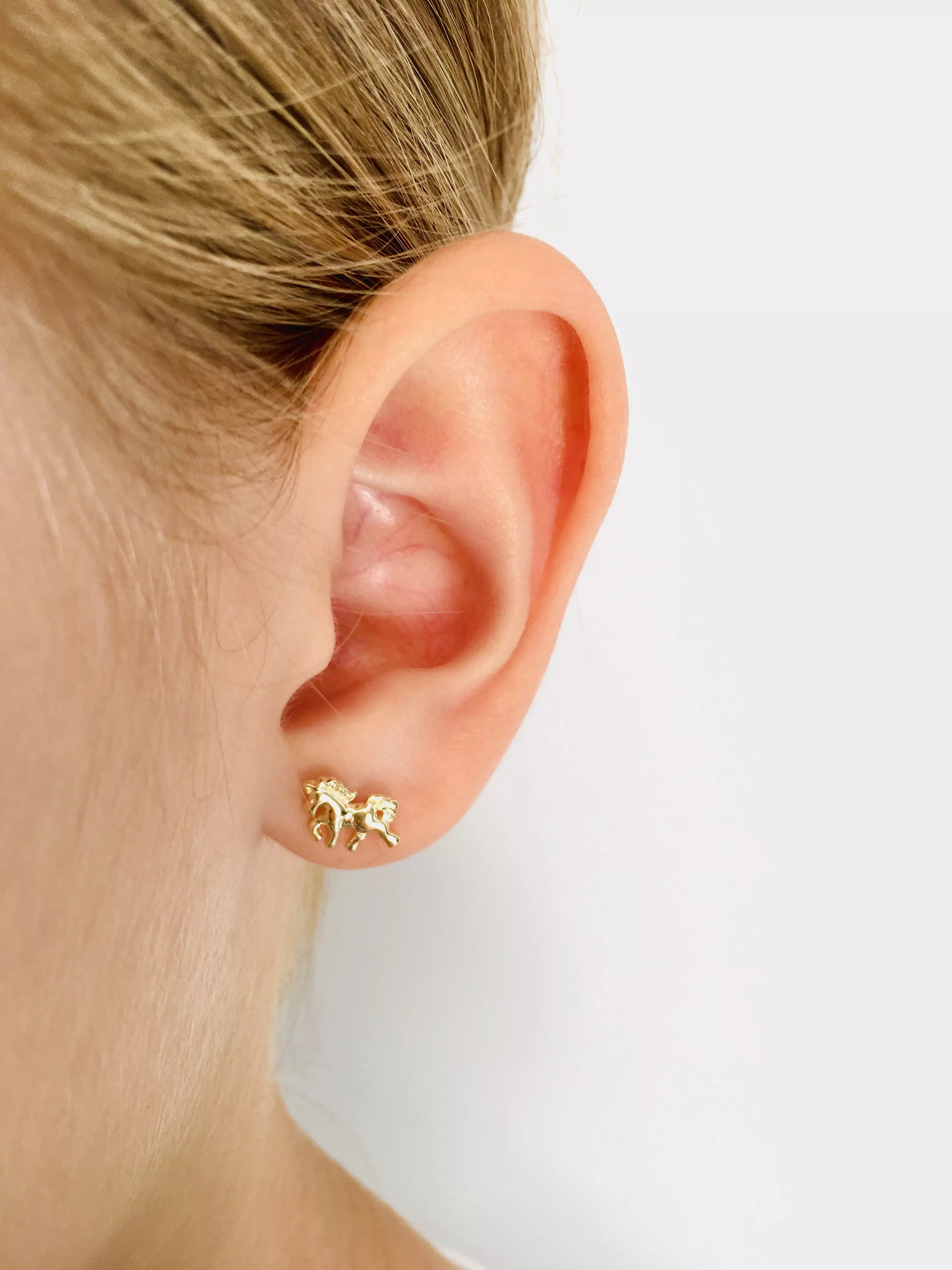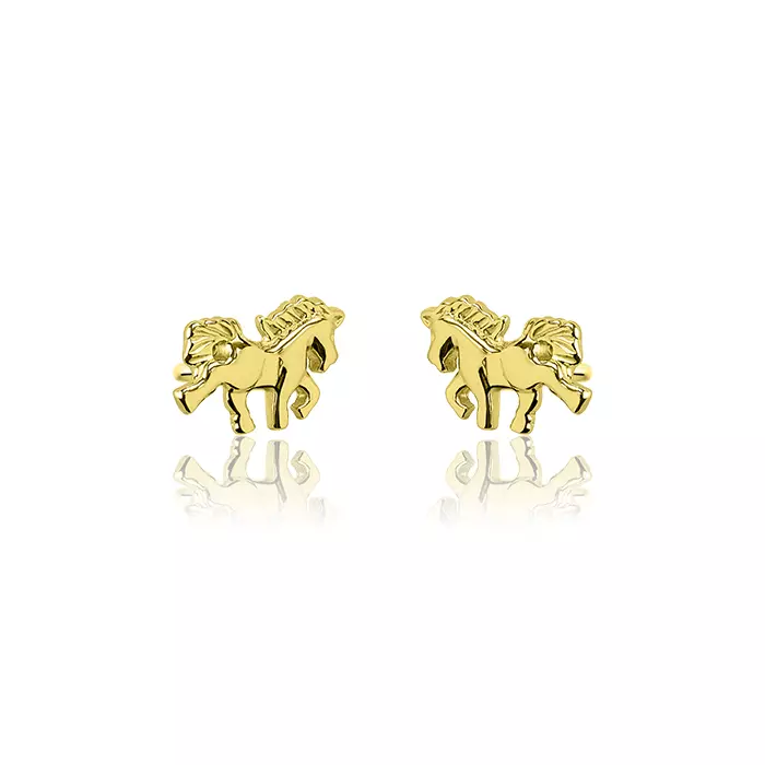 Złote kolczyki konie dla dziewczynki próba 585 sztyft , Prezent Komunia, urodziny