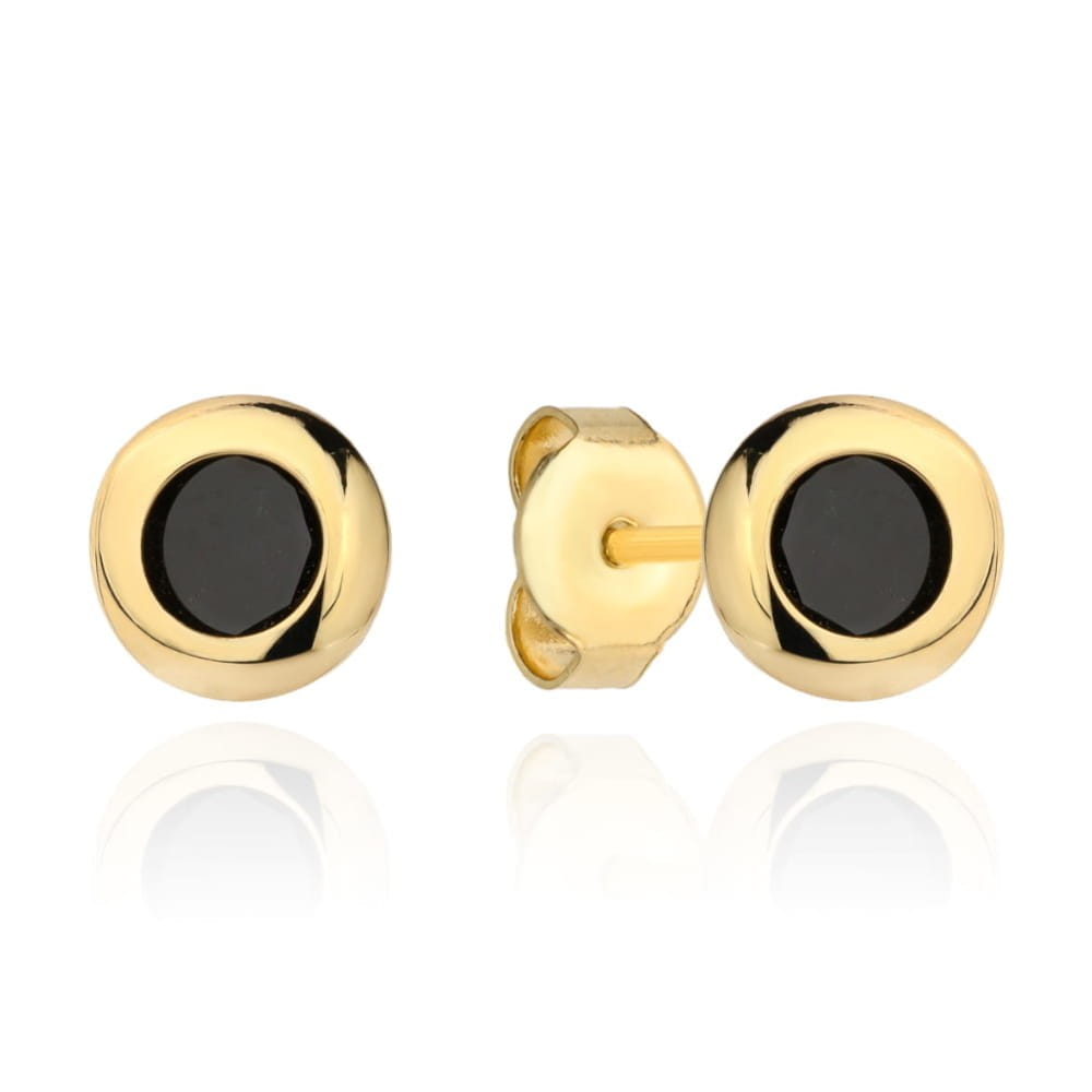 Złote kolczyki na sztyfcie czarny kamień w gładkiej oprawie