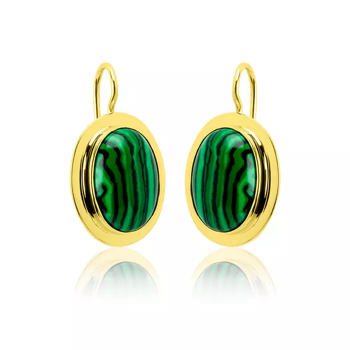 Złote kolczyki z owalnym dużym Malachitem próba 585 bigiel klasyczny