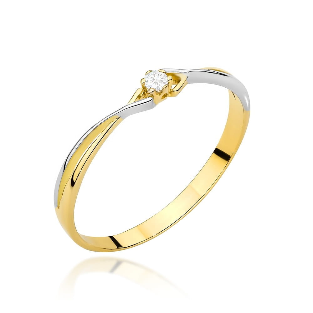 Złoty Pierścionek dwa kolory złota i cyrkonia próba 585