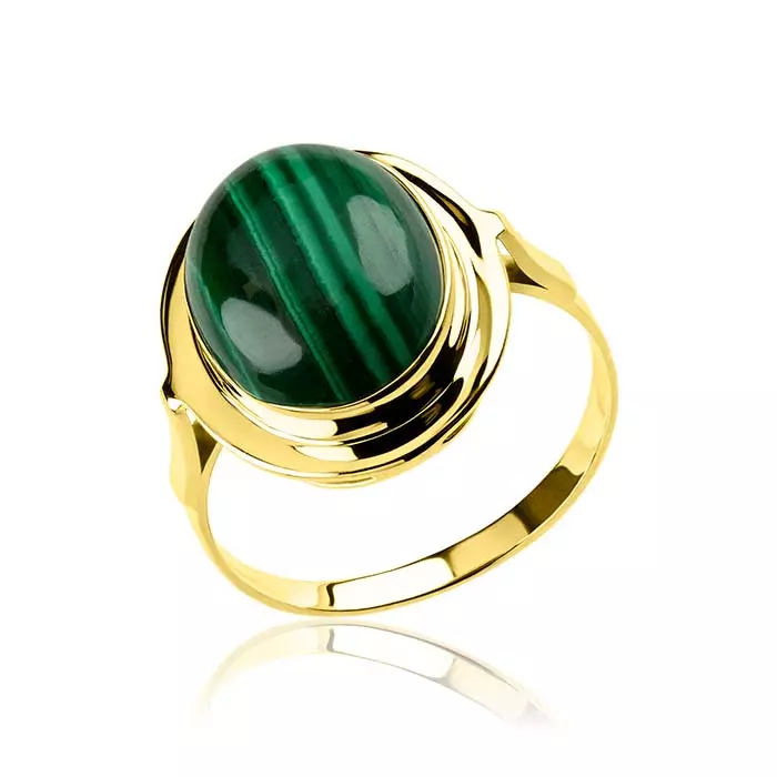 Złoty pierścionek z Malachitem próba 585 duży kamień