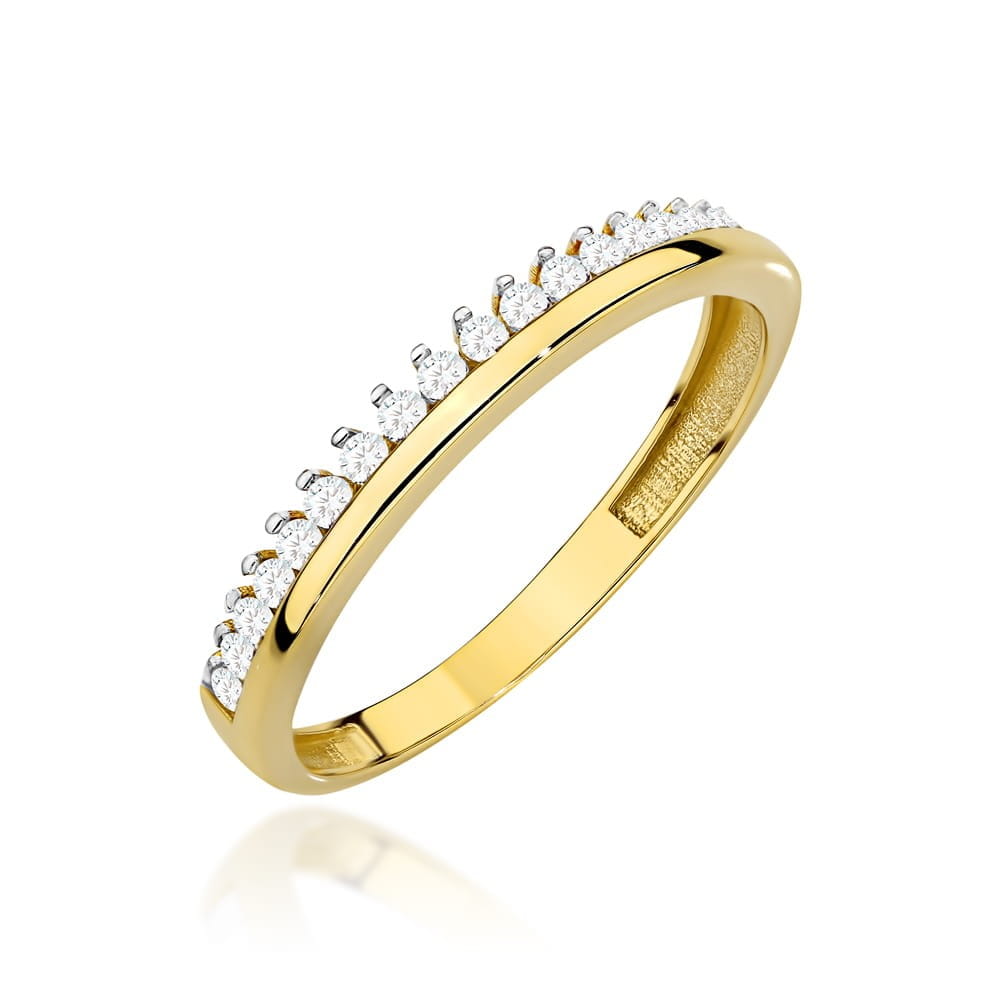 Złoty pierścionek z cyrkoniami gładki 585 rodowany