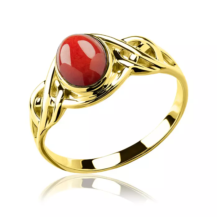 Złoty pierścionek z koralem o próbie 585 to elegancka biżuteria dla kobiet, które cenią sobie wyjątkowe wzornictwo oraz klasyczną elegancję. Wykonany z najwyższej jakości złota, zachwyca subtelnym i ponadczasowym designem. Centralnym elementem pierścionka jest owalny koral, symbolizujący harmonię i energię, który nadaje mu wyrazistości oraz unikalnego charakteru.