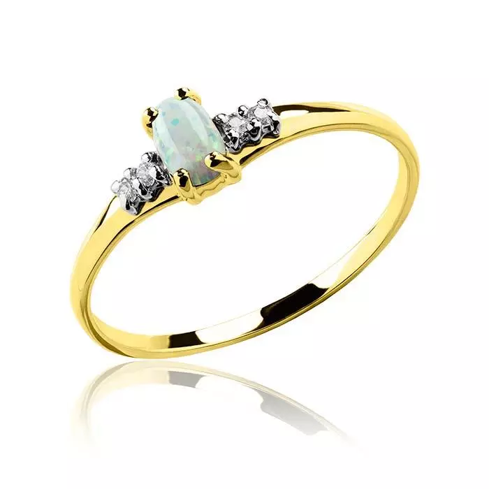 Złoty pierścionek z opalem i cyrkoniami owalny próba 585